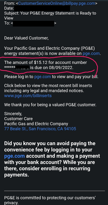 다른얘기 하나도 안하고 그냥 pg&e 요금 내려고