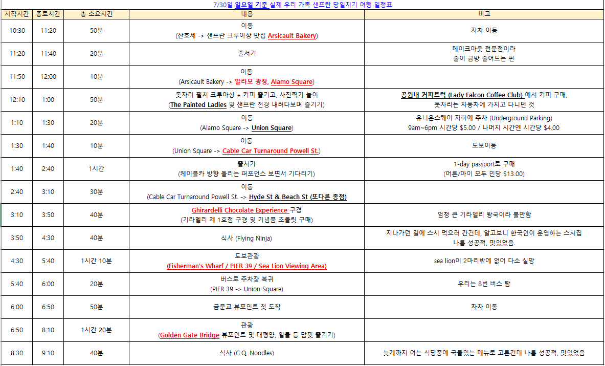 ————샌프란 당일치기 여행 내용———