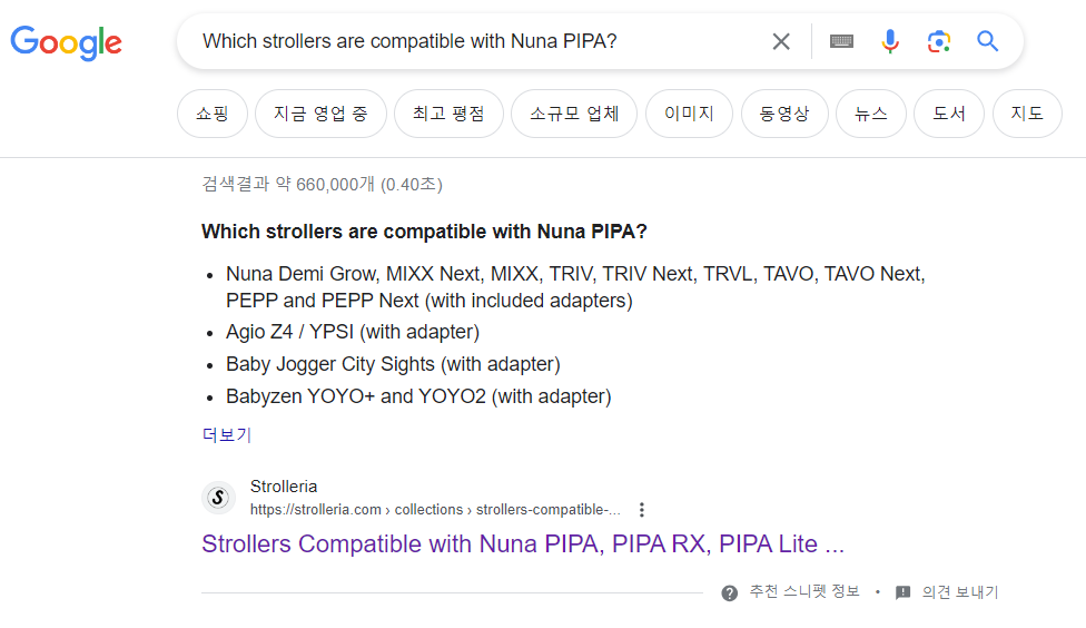 (어떤 유모차가 Nuna PIPA 와 호환됩니까?)