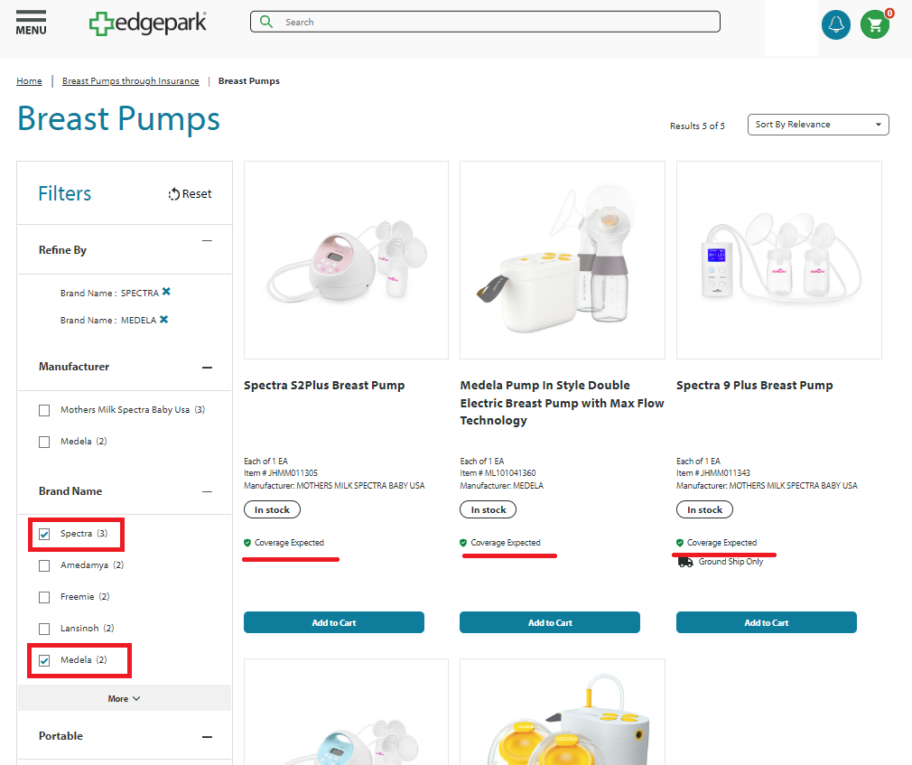 2. 검색결과에 breast pumps through insurance